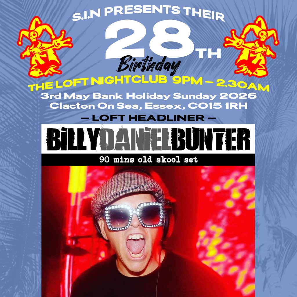 ๐S.I.N 28th Birthday 2026ย is coming to The Loft, Clacton-on-Sea! Happening on 2026-05-03, this exciting Nightclub event brings top entertainment to the heart of Clacton-on-Sea and the wider Tendring and Essex area โ including Clacton-on-Sea, Harwich, Brightlingsea, and Mersea Island.